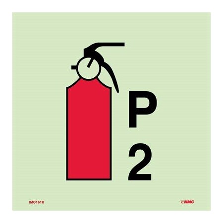 National Marker Corp. IMO161R IMO, Symbol, Fire Extinguisher Powder P2, 6 Inch X 6 Inch, Glow Rigid Laminated