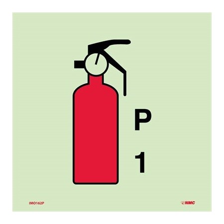 National Marker Corp. IMO162P IMO, Symbol, Fire Extinguisher Powder P1, 6 Inch X 6 Inch, Glow Vinyl Laminated