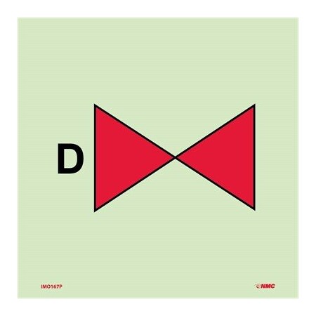NMC IMO167P Drenching Section Valves IMO Symbol, Glow Vinyl Laminated, 6" x 6", Red