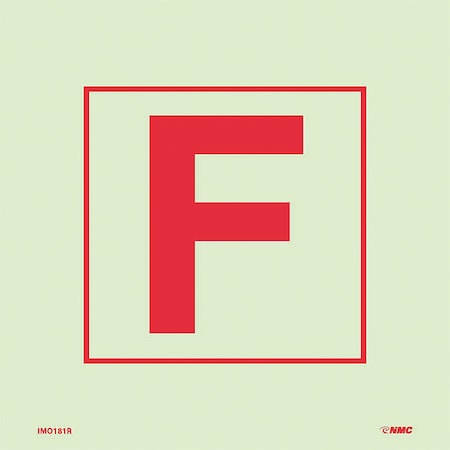 NMC IMO181R Fire Control Plan "F" Sign - 6 in. Square Safety Sign, 6 Hour Glow Rigid, Red on Glow Yellow