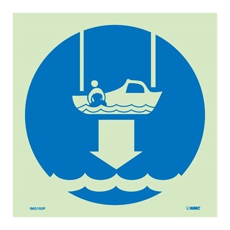 National Marker Corp. IMO193P IMO, Symbol, Lower Rescue Boat to Water, 6 Inch X 6 Inch, Glow Vinyl Laminated