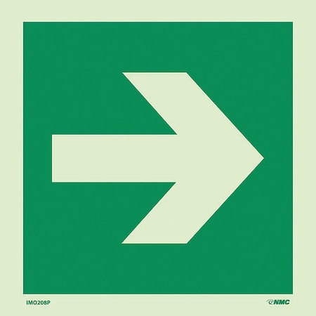 NMC IMO208P Right Arrow Sign – 6 in. x 6 in. 6 Hour Glow Polyester Exit Sign with Yellow on Glow Green, Right Arrow Graphic