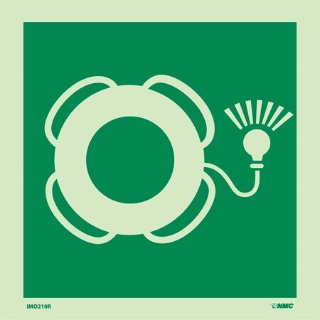 NMC National Marker Corp. IMO210R IMO, Symbol, Life Buoy with Light, 6 Inch X 6 Inch, Glow Rigid Laminated'
