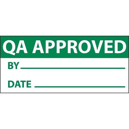 NMC INL6 Inspection Label, Legend"QA Approved", 2-1/4 Length x 1" Height, Pressure Sensitive Vinyl, Green on White (Pack of 27)