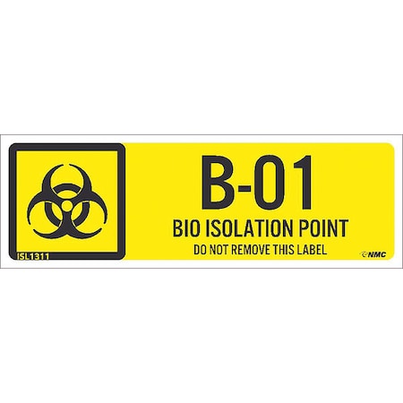 Label Bio Hazard Isolation Point , 1 x 3 , Adhesive Backed Vinyl