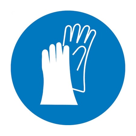 NMC ISO204AP Wear Hand Protection ISO Label with Graphic, 2" Diameter, Pressure Sensitive Vinyl, White on Blue