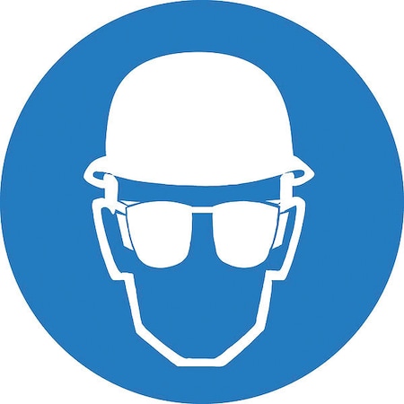 NMC ISO210AP Wear Head and Eye Protection ISO Label with Graphic, 2" Diameter, Pressure Sensitive Vinyl, White on Blue