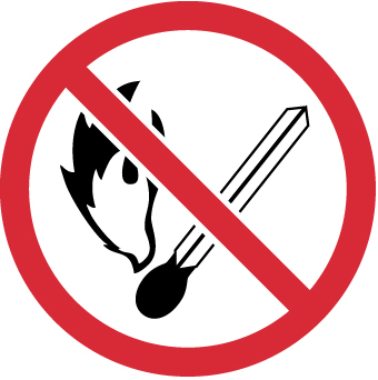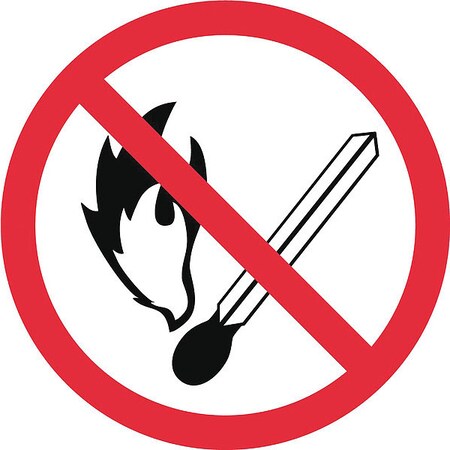 NMC ISO220AP No Fire or Open Flame ISO Label with Graphic, 2" Diameter, Pressure Sensitive Vinyl, Red/Black on White