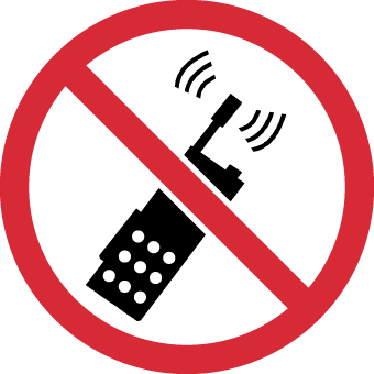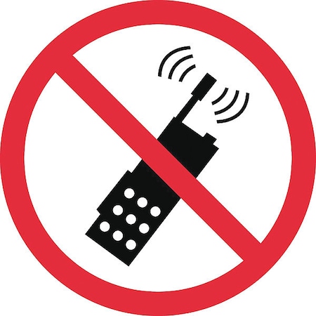 NMC ISO227AP No Portable Transmitters ISO Label with Graphic, 2" Diameter, Pressure Sensitive Vinyl, Red/Black on White