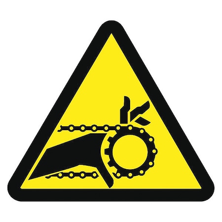 NMC ISO247AP Chain Drive Entanglement Hazard ISO Label with Graphic, 2" Length x 2" Width, Pressure Sensitive Vinyl, Black on Yellow