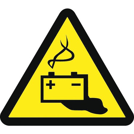 NMC ISO254AP Battery Hazard ISO Label with Graphic, 2" Length x 2" Width, Pressure Sensitive Vinyl, Black on Yellow