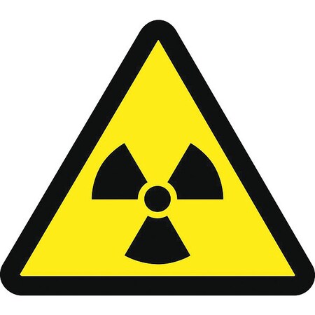 NMC ISO261AP Radioactive Material Hazard ISO Label with Graphic, 2" Length x 2" Width, Pressure Sensitive Vinyl, Black on Yellow