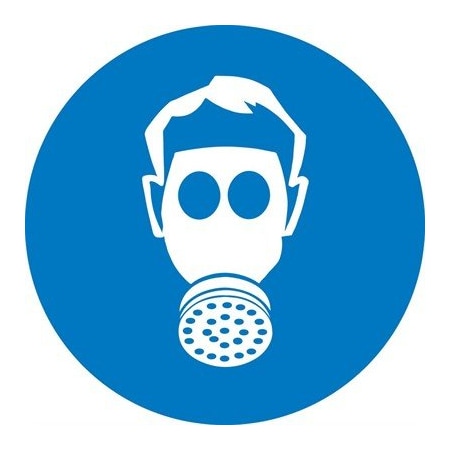 NMC ISO407AP Wear Respiratory Protection ISO Label with Graphic, 4" Diameter, Pressure Sensitive Vinyl, White on Blue