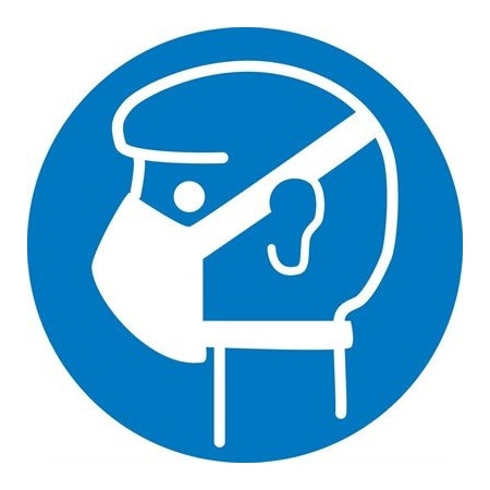 NMC ISO408AP Wear Mask ISO Label with Graphic, 4" Diameter, Pressure Sensitive Vinyl, White on Blue