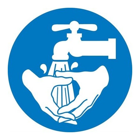 NMC ISO417AP Wash Hands ISO Label with Graphic, 4" Diameter, Pressure Sensitive Vinyl, White on Blue