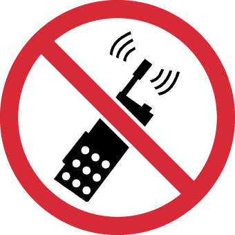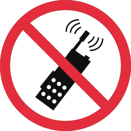 NMC ISO427AP No Portable Transmitters ISO Label with Graphic, 4" Diameter, Pressure Sensitive Vinyl, Red/Black on White