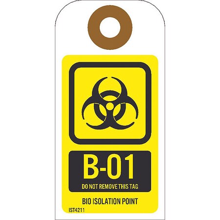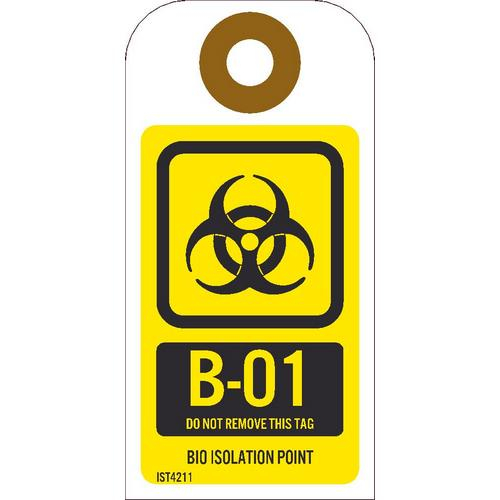 NMC IST4211 Safety Sign Energy Isolation, Bio Hazard Isolation Point, Tags, 4X2.015 Unrip Vinyl, Grommet, Sequential Numbering 1-10, Pk10