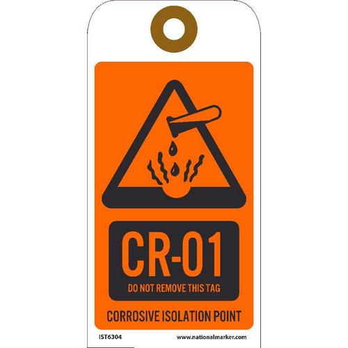 NMC IST6304 Safety Sign Energy Isolation, Corrosive Isolation Point, Tags, 6X3.015 Unrip Vinyl, Grommet, Sequential Numbering 1-10, Pk10