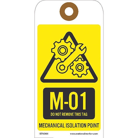 NMC IST6306 Safety Sign Energy Isolation, Mechanical Isolation Point, Tags, 6X3.015 Unrip Vinyl, Grommet, Sequential Numbering 1-10, Pk10