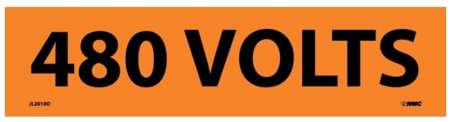 JL2010O - Voltage Marker, Pressure Sensitive Vinyl, 480 Volts, 2-1/4" X 9"