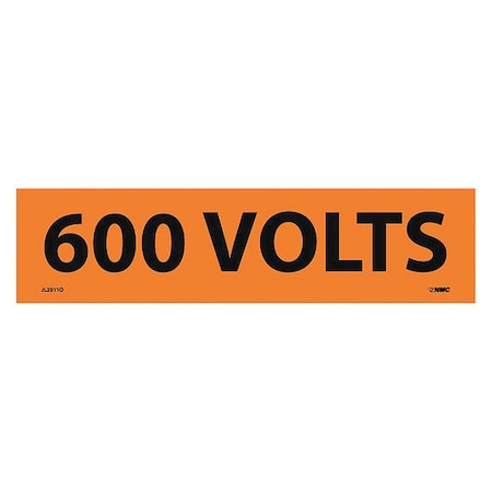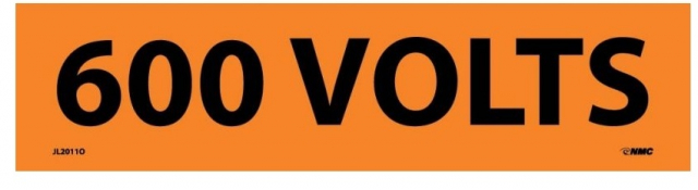 NMC JL2011O Voltage Marker, Legend "600 Volts", 9 Length x 2-1/4" Height, Pressure Sensitive Vinyl, Black on Orange