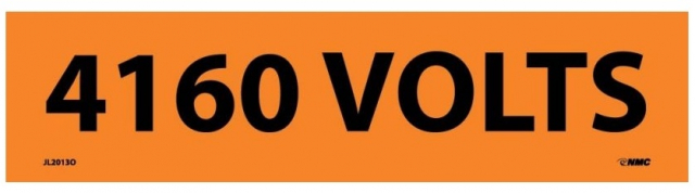NMC JL2013O Voltage Marker, Legend"4160 VOLTS", 9 Length x 2-1/4" Height, Pressure Sensitive Vinyl, Black on Orange