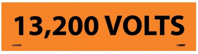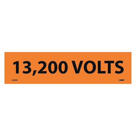 NMC JL2038O Electrical Marker, Legend "13,200 Volts", 9 Length x 2-1/4" Height, Pressure Sensitive Vinyl, Black on Orange (Pack of 25)