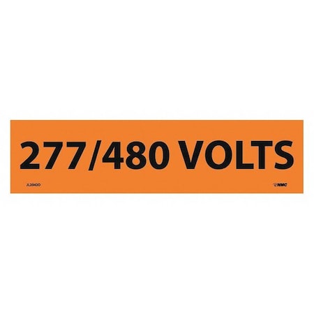 NMC JL2042O Electrical Marker, Legend "277/480 Volts", 9 Length x 2-1/4" Height, Pressure Sensitive Vinyl, Black on Orange (Pack of 25)