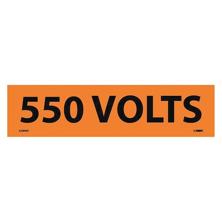 NMC JL2044O Electrical Marker, Legend "550 Volts", 9 Length x 2-1/4" Height, Pressure Sensitive Vinyl, Black on Orange (Pack of 25)