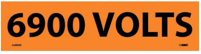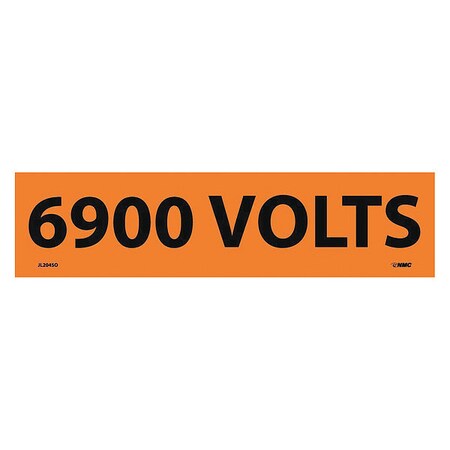 NMC JL2045O Electrical Marker, Legend "6900 Volts", 9 Length x 2-1/4" Height, Pressure Sensitive Vinyl, Black on Orange (Pack of 25)