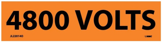 NMC JL22014O Voltage Marker, Legend "4800 VOLTS", 4-1/2 Length x 1-1/8" Height, Pressure Sensitive Vinyl, Black on Orange
