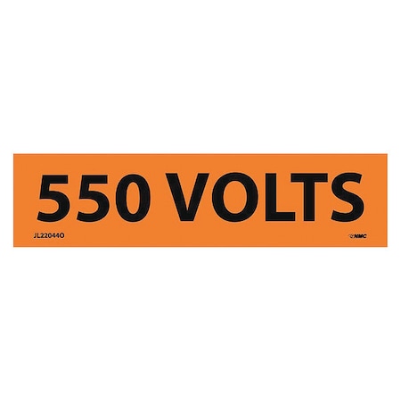 NMC JL22044O Electrical Marker, Legend "550 Volts", 4-1/2" Length x 1-1/8" Height, Pressure Sensitive Vinyl, Black on Orange (Pack of 25)
