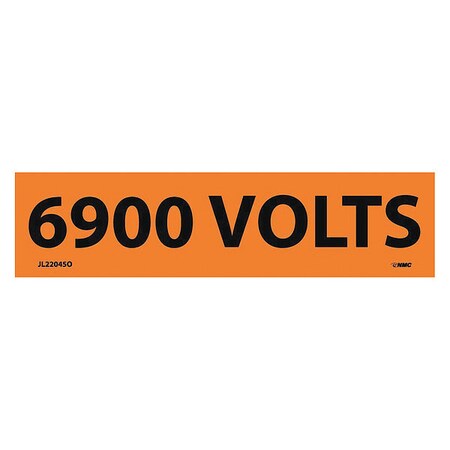 NMC JL22045O Electrical Marker, Legend "6900 VOLTS", 4-1/2" Length x 1-1/8" Height, Pressure Sensitive Vinyl, Black on Orange (Pack of 25)