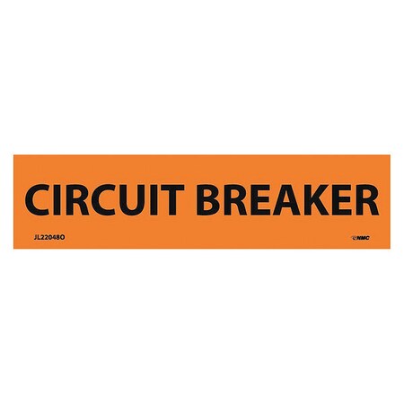 NMC JL22048O Electrical Marker, Legend "CIRCUIT BREAKER", 4-1/2" Length x 1-1/8" Height, Pressure Sensitive Vinyl, Black on Orange (Pack of 25)