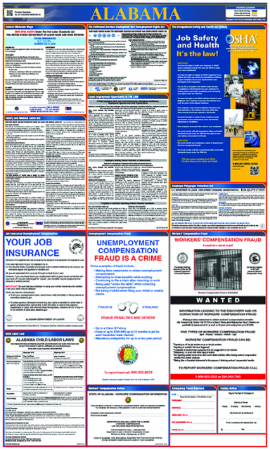 - State Specific Posters: this labor law safety poster shares various regulations mandated by the state of Alabama. The state law poster helps employees in being more aware about their rights and obligations