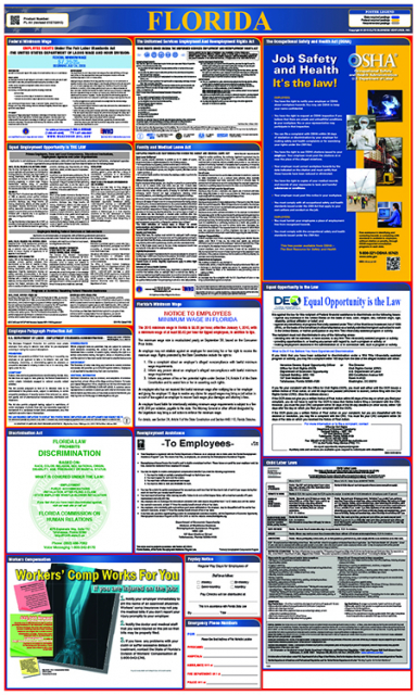 - State Specific Posters: this labor law safety poster shares various regulations mandated by the state of Florida. The state law poster helps employees in being more aware about their rights and obligations