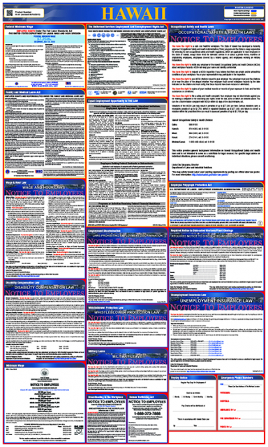 - State Specific Posters: this labor law safety poster shares various regulations mandated by the state of Hawaii. The state law poster helps employees in being more aware about their rights and obligations