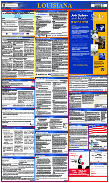 - State Specific Posters: this labor law safety poster shares various regulations mandated by the state of Louisiana. The state law poster helps employees in being more aware about their rights and obligations