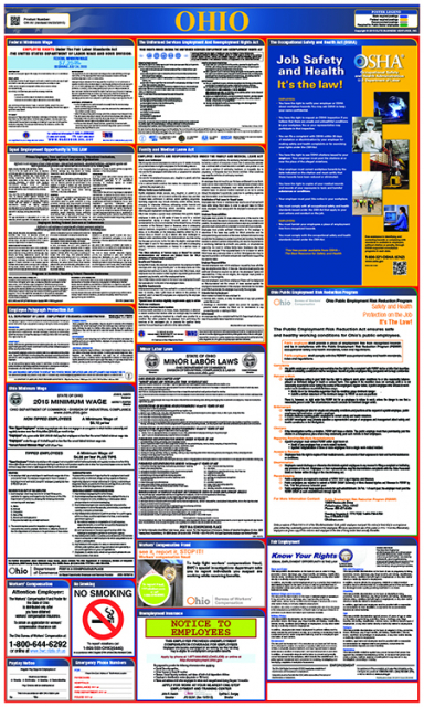 - State Specific Posters: this labor law safety poster shares various regulations mandated by the state of Ohio. The state law poster helps employees in being more aware about their rights and obligations
