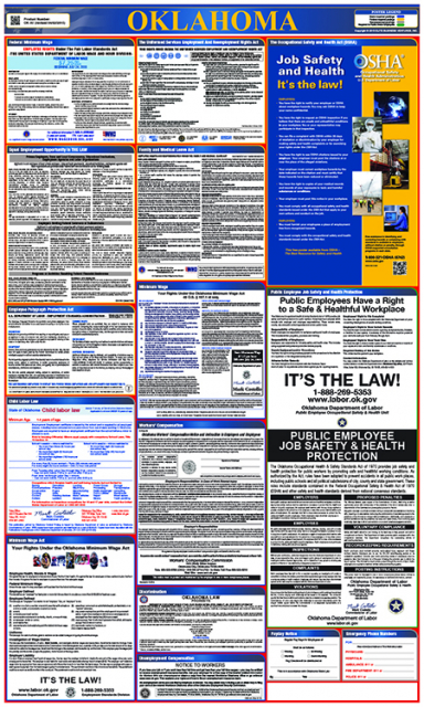 - State Specific Posters: this labor law safety poster shares various regulations mandated by the state of Oklahoma. The state law poster helps employees in being more aware about their rights and obligations