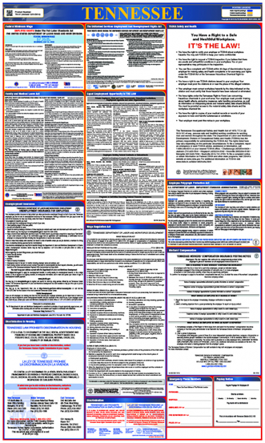 - State Specific Posters: this labor law safety poster shares various regulations mandated by the state of Tennessee. The state law poster helps employees in being more aware about their rights and obligations