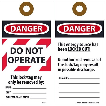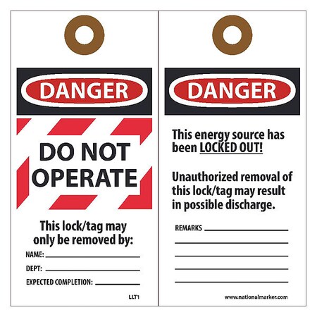 NMC - National Marker Company TAGS, LOCKOUT, DANGER DO NOT OPERATE, 6X3, ENCASED LAMINATION Laminated Lockout Tag Laminated tags withstand the harshest dirt and greasy conditions. Made from our unwrippable vinyl encased in heavy duty lamination.