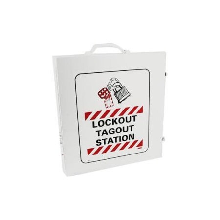 - Tagout Cabinet: the cabinet is used to store and transport lockout devices. It comes with a locking side hinge to help keep the devices secure. The cabinet has shelves to conveniently place lockout/tagout products inside