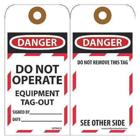 Dngr Do Not Operate Equip Tag-Out,PK10, Package Quantity 10