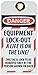 - Header "DANGER" and legend "EUIPMENT LOCK-OUT A LIFE IS ON THE LINE! THIS TAG & LOCK TO BE REMOVED ONLY BY THE PERSON SHOWN ON BACK"