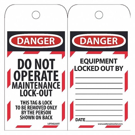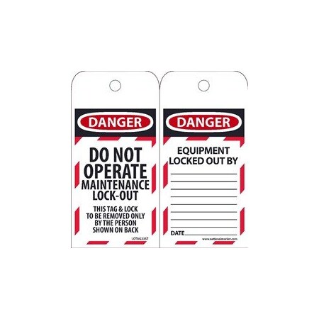 LOTAG33ST Polytag National Marker Danger Do Not Operate Maintenance Lock-Out Tag (Pack of 25)