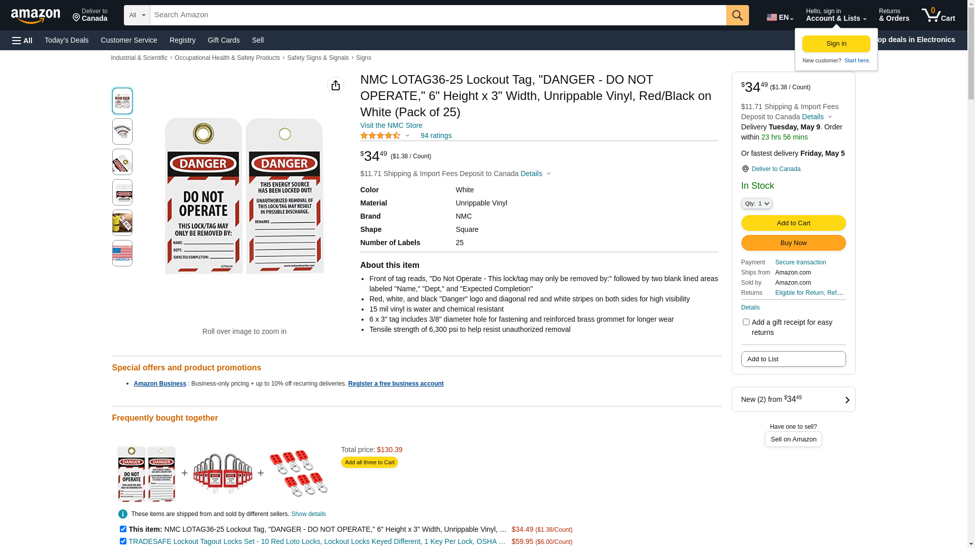 NMC LOTAG36-25, Lockout Tag (10 Packs of 25 pcs)