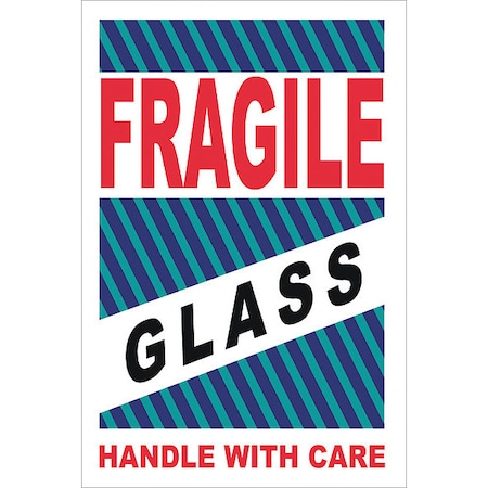 LR12AL-LABELS, SHIPPING AND PACKING, FRAGILE GLASS HANDLE WITH CARE, 4 X 6, PS PAPER, 500/ROLL