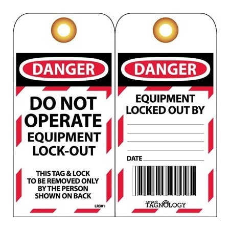 LR301 Unrippable Vinyl 015 National Marker RFID Tag, Danger Do Not Operate Equipment Lock Out (Pack of 10)