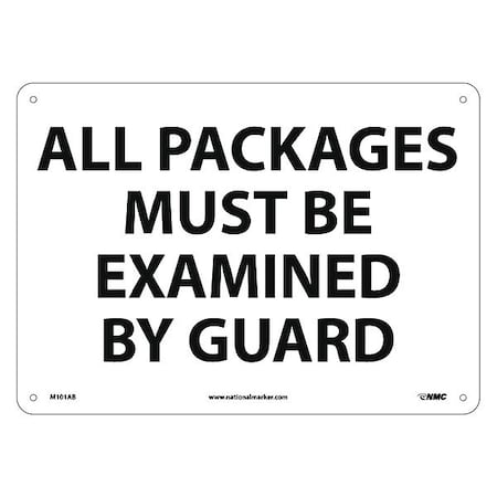 NMC M101AB Security Sign, Legend "ALL PACKAGES MUST BE EXAMINED BY GUARD", 14" Length x 10" Height, Aluminum 0.040, Black on White
